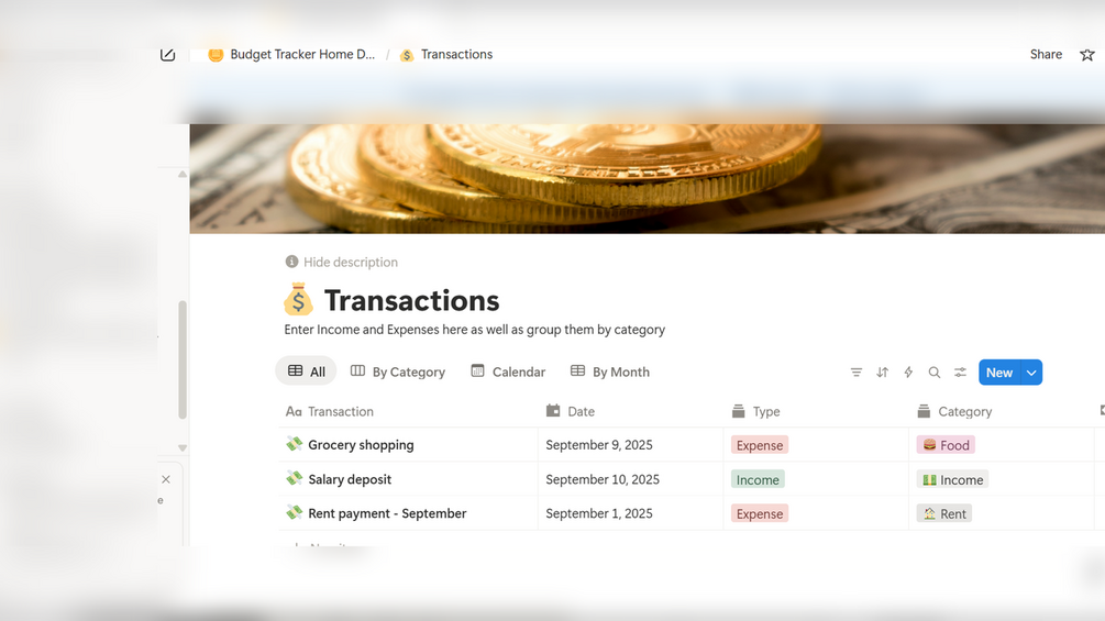 - Monthly totals that make sense — auto-calculated Income, Expense, and Net