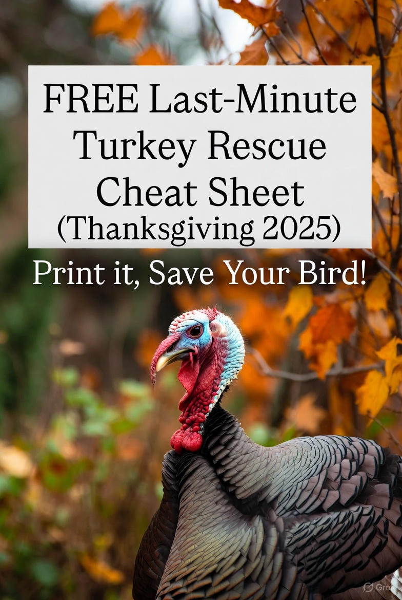 🦃 FREE 1-PAGE TURKEY RESCUE CHEAT SHEET (Print it, tape it to your fridge, save Thanksgiving)